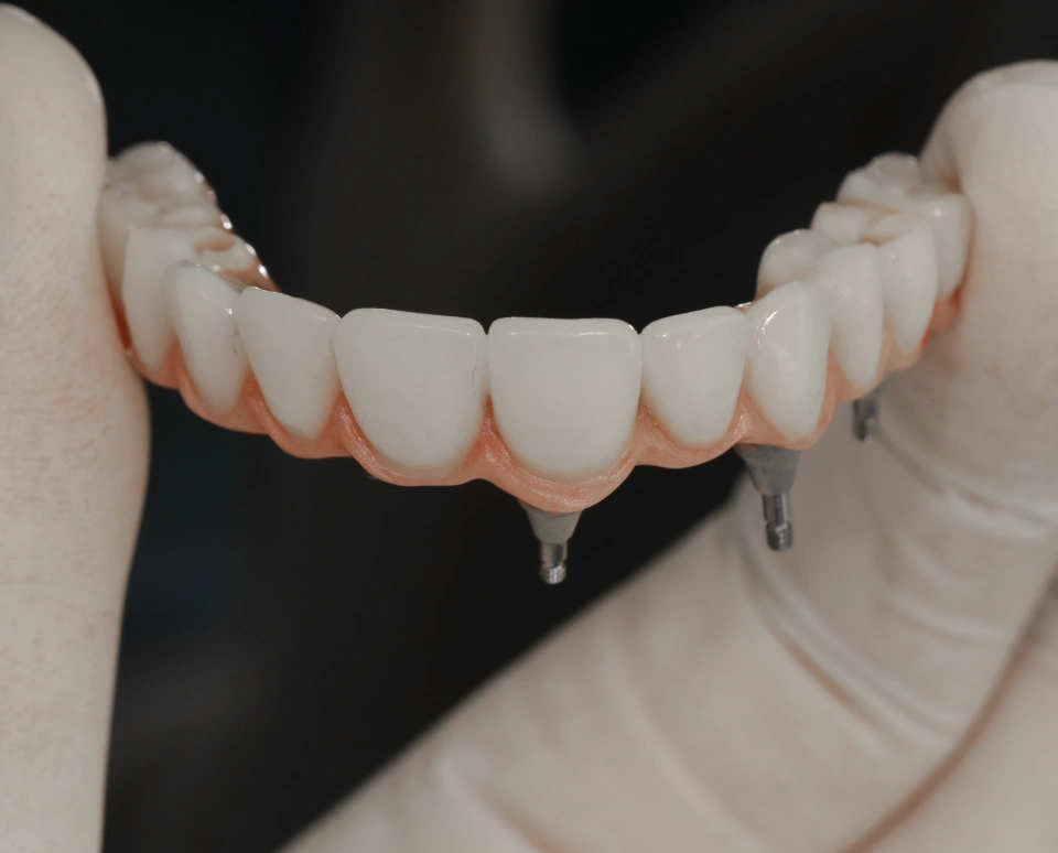 Em casos de perda de dentes severa ou total, a prótese fixa sobre implantes usa-os como raízes artificiais para suportar uma prótese completa e estável. Assim restaura função, estética e conforto de forma semelhante aos dentes naturais.