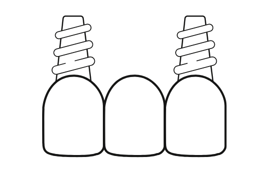 Uma ponte dentária substitui vários dentes seguidos, fixando dentes artificiais, como uma ponte, em implantes dentários. Desta forma, preenche-se o espaço vazio, restaurando a função e a estética da boca.
